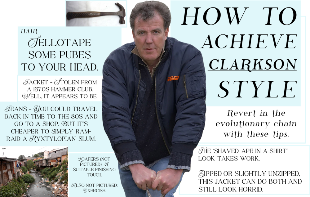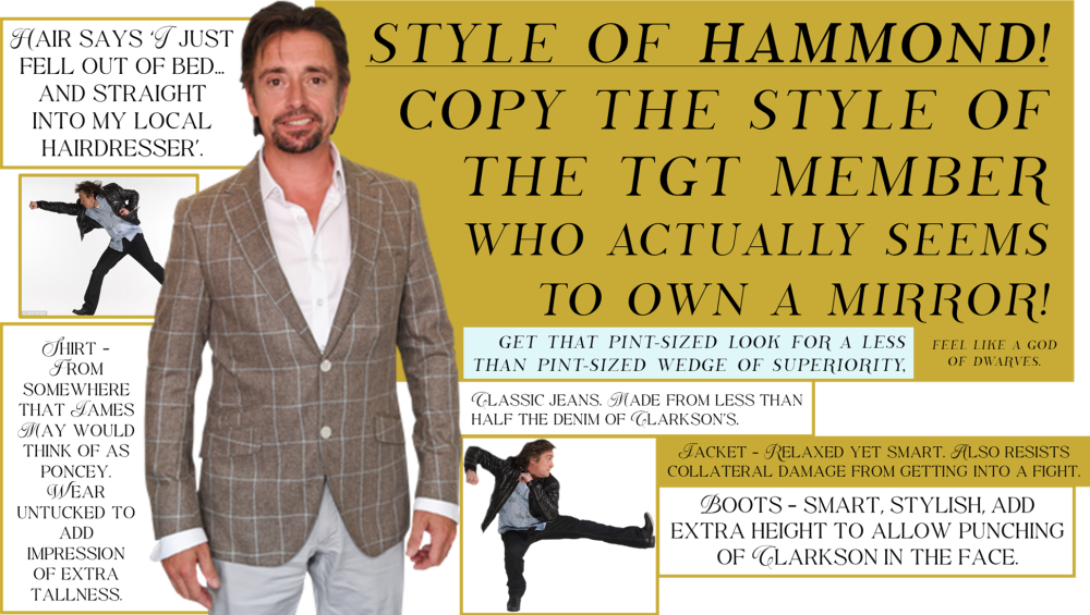 Somewhere in Ryxtylopia... we aren't sure because James was in charge of directions... [May grabs something from the luggage the trio took with them on their flight with the Youkai.] James May: Hey chaps, look at what I brought from our last visit here. Richard Hammond: Oh? Let's see. A small thing done by Hammond at the 1423 Football World Cup III, in the same place as the 1425 Rugby World Cup VI. R. Hammond: Oh, I remember doing this. Hard to believe it's been only two years. Feels like it's been a lot longer... Jeremy Clarkson: Here's mine, in case anyone was interested in obtaining my impeccable fashion sense. Clarkson does not, in fact, have an impeccable fashion sense. J. Clarkson: ...What do you mean, pubes?! R. Hammond: Have you seen your hairline, Jeremy? J. Clarkson: Well, it's better than having a wet mop on your head! J. May: At least my hair is natural. J. Clarkson: This is natural! R. Hammond: Yeah, about as natural as those slip-on shoes. [May looks down to see Clarkson's shoes.] J. May: ......Are you wearing those for a bet? J. Clarkson: No? J. May: No!? [May and Hammond try to hold back subtle laughter.] R. Hammond: Anyway, uh, here's mine. Naturally since Hammond made these, he'd make the one about himself the most flattering. R. Hammond: I think I rather outdid myself here. J. May: Wait, fight? Extra tallness? God of dwarves? J. Clarkson: I added those parts. R. Hammond: I noticed. So I added the part about the boots. J. Clarkson: You still wouldn't be able to reach me. R. Hammond: You wanna give it a go, huh? J. May: Chaps, let's not...! J. Clarkson: No, yeah okay, let's remain civil. R. Hammond: Yeah, let's not make this into a fight. J. May: Now then, where's mine? [Hammond looks incredulously at May.] R. Hammond: James. You don't have one. J. May: Why not? R. Hammond: YOU NEVER SHOWED UP. J. Clarkson: I recall you getting lost in a slum. J. May: ...Oh yeah. I was kind of hoping you wouldn't remember that. J. Clarkson: How could we forget? The Tsar had to pick you up. R. Hammond: And that bodyguard nicked your identity. J. May: I wasn't best pleased with her. She made me become Dingleberry Handpump. J. Clarkson: We should call you that again. R. Hammond: Another time, Jeremy. J. May: A time called never. R. Hammond: You can't escape it, she's James May now. Has been for 2 years now, and if you steal Vanya's identity back, Mecislavs security team will be hunting you down in big black tanks all across Esferos. J. Clarkson: Don't worry. You're still James May to us. J. May: That's possibly the most touching thing you've said. J. Clarkson: I'm still going to call you Handpump though. J. May: Why? J. Clarkson: Because it's funny. R. Hammond: I'll go sort out the legal documents, shall I? J. May: You bloody well will not. I'll throw you into the slums here. R. Hammond: They don't exist, remember? [Hammond laughs while being a sod.] -