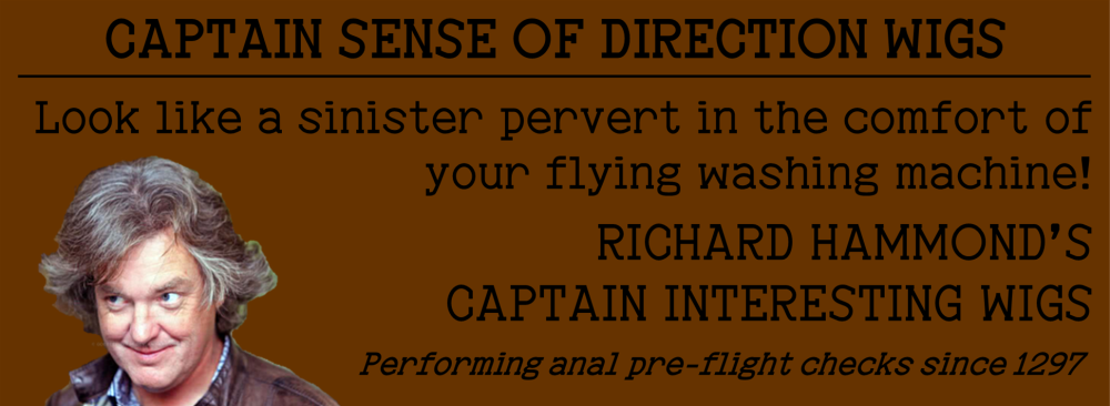 Nearby a weirdly fancy building in a town in the far west of Hertfordshire-Jammbo called Arkti in the county of Anglia... J. Clarkson: Well, we got ourselves here. We're sorted and ready to go. R. Hammond: Now, the national team's first match is against Saint Mark. They're known here for being the complete antithesis of Hertfordshire-Jammbo. Whereas they are the monocle-adjusting fancy-pants of Esferos, we are the slightly frozen over Village People. J. May: They'll probably be eating truffles about now. J. Clarkson: Δ65, they'll cost, for something that looks like a mummified testicle. Right, you two ready? R. Hammond: Have we really got our own plane? J. May: Yep. R. Hammond: Fantastic! Let's go. Onwards to Ryxtylopia. [The trio depart to the place where their plane is waiting.] J. Clarkson: I'd better not have to deal with airport check-in again today. R. Hammond: You see, this time because we're using a private plane, there's no check-in, no queuing, no waiting around. So this time, we are gonna leave early and we're gonna leave well. J. Clarkson: So we are 181 Squadron. R. Hammond: No Jeremy, that's Polaris. J. May: We're 383 Squadron. J. Clarkson: Ah. R. Hammond: Forward to victory! J. May: The Genesis are 11th in the rankings and are in a group with the current number one ranked team. Don't get carried away. R. Hammond: Come on, have a little faith. [The three make it to the field where their plane lies in wait... Clarkson rushes off to the lavatory.] R. Hammond: Go. J. Clarkson: Going. J. May: Ah ha, now we get down to business. The 0H-8J Combine Tractor that May has brought to take himself and his two colleagues to Ryxtylopia for the 3rd Football World Cup. If you may remember, the previous one was hosted right at home in Hertfordshire-Jammbo. Not sure how we landed that. R. Hammond: Hang on a second! Is that it? J. May: Well, it's a 0H-8J Combine Tractor. R. Hammond: James, it's pathetic! It looks like something a farmer would leave behind. J. May: Honestly, it's a good kite, this. R. Hammond: ...Kite?! [Clarkson comes back from the lavatory and sees the old military plane.] J. Clarkson: Hello. R. Hammond: He's trying to make us go in the sky in something you'd see poking out of a skip. J. Clarkson: What is it? What's it called? R. Hammond: 0H-8J Combine Tractor, whatever that is, it used to be an old crop duster I suspect. J. Clarkson: This is a military aircraft apparently. R. Hammond: And that's only the start. J. Clarkson: It's basically a toaster with wings nailed to the sides. R. Hammond: James, what are you actually doing now? J. Clarkson: What's happening? J. May: Well, you have to do pre-flight checks. Make sure stuff's all working properly. If you're really interested, I'm going to turn on the battery master switch along with checking the landing lights, stall warning vein, the heat and the flap operation- R. Hammond: They're likely to have broken, since it was parked? J. May: Well you don't know. R. Hammond: What, like the plane picked itself up and nibbled away at all the wires or something... J. Clarkson: If you look closely Richard you can see that James is really enjoying this. R. Hammond: If you also look closely you can see that I'm not. J. Clarkson: That makes two of us. R. Hammond: How long do these checks take? J. May: 20 minutes, half an hour. R. Hammond: ...Not today, mate. You've got... y- there must be a way of doing this more quickly. J. May: Why don't you shut up and do what airplane passengers do which is sit in the terminal, have a cup of tea, complain how expensive it is... R. Hammond: I swear, he enjoys the checks more than the flying. [May refills one of the oil compartments.] J. May: Nice. Very nice. J. Clarkson: If I tell you that The Genesis are already in sight of Ryxtylopia? R. Hammond: God, we- we really have to get a move on. James! James! I just noticed the wings have come off. Oh no, no they're still on. You can tick those, they're alright. Yep, that's on. J. May: Is it? R. Hammond: These are on, look. J. May: Tires, are they all up? R. Hammond: Yes! Go. J. Clarkson: James is still engaged in his pre-flight festival of analness? R. Hammond: Think of it this way. One of us has lost the will to live. Guess which one. [Clarkson can't help but laugh.] J. May: Because it's been standing overnight, you have to make sure there's no sediment or water in the fuel which could cause- R. Hammond: Is there any sediment or water in the fuel?! J. May: Well you have to check it like this, look I'll show you. These are drain points, you use this special cup. R. Hammond: Good, good. Oh look, it's clear. J. May: You take a sample out and you make sure there's no water in it which you would see as a separate layer. See? Clear. R. Hammond: Good. Go! In the sky. J. May: Well there are five of these on each side and two under the engine. [A time frame within 17 years later...] J. May: Got your seatbelts on? R. Hammond: Is this more checks? J. May: No, seatbelt. Put in on. R. Hammond: Yeah, it's on! J. May: Okay. [Clarkson and Hammond look at each other in sheer disbelief and exasperation.] J. May: Hello, this is 0H-8J Combine Tractor Guilty Barricade Origin Zone Mirage, request taxi for a TGT flight to the Football World Cup in Ryxtylopia please. J. Clarkson: Well that didn't take long at all. J. May: I'm ready to go. Are you ready in the back? R. Hammond: To the sky! [The trio finally take to the skies on their way from Arkti in Hertfordshire-Jammbo to Ryxenia in Ryxtylopia.] R. Hammond: You love this, don't you? J. May: I quite like it, yeah. J. Clarkson: You loved the checks more. R. Hammond: James. We don't seem to be going very fast. J. May: Well we're doing 80 knots indicated air speed. R. Hammond: 80 knots is about 85, 90 miles/hour? J. May: Yeah, it's not quite that simple 'cause we're now at a pressure altitude of nearly 7,000 feet so you have to consider the true air speed. Indicated air speed is what you fly on, that's the rate at which the air is h