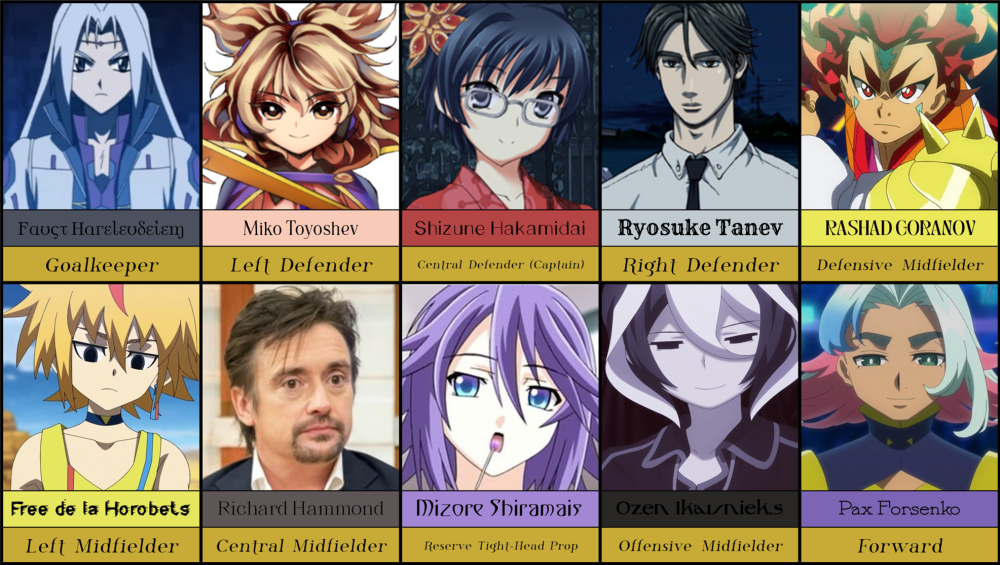 When Clarkson, Hammond and May all convened with the rest of The Genesis, they spent an idle time driving about. Hammond then told the other two to go away... Jokichi Y.: Hey! I brought that camera you asked for. Lyubomyr D.: Just put it over there, yeah? Enrico P.: Yes. The others will sort it out. Rashad G.: Hey, you need any help? Ozen I.: That won't be necessary. Kanako Y.: Let's hurry up here, we don't exactly have time to be lazing about. Nia H.: This feels like a scene from an anime. [Reimu yawns excessively, refusing to move from the strenuous activity of drinking sake on the floor with a glorified pillow for comfort] Reimu H.: Do I have to? This is hardly important. Clarkov S.: ...Really? Rashad G.: You're not exempt from this, Reimu. Yuri M.: Look over here. Now would you come and help please? [Reimu reluctantly gets up and helps the others set up the equipment, Hammond then enters the room.] R. Hammond: Thanks guys. You've been a real help today. Rashad G.: No problem, Richard. You said you wanted it done quickly. R. Hammond: Yeah, I got something I want to show. Seiko S.: Well, let's clear the area and let Richard get to it. [Hammond prepares to address the viewers tuning in to the live session while the others leave the room.] Seiko S.: Hey, did you know Richard always ad-libs his videos? Naho S.: I think we all knew that. Now if you'll excuse me, I need to be looking for someone. Info-C.: Still searching for Kou, I see. Naho S.: Who else? Lain, make sure Seiko doesn't follow me. I'm not sure I can bear her. Lain V.: Yeah, no problem. [Lain grabs Seiko by the arm and drags her along with him, Naho diverts in search of her mentor and Hammond turns on the camera to begin filming.] R. Hammond: Hello. This is rather impromptu from me, but you'll soon see why. Now, I'm known to have a lot of people back in Hertfordshire & Jammbo... mainly teenage girls and a few teenage boys... that think I'm the most handsome person this side of Oliver. J. May: Oliver...! [May holds back laughter in the distance.] R. Hammond: Ignore that, it's just a spaniel. Anyway, I was reading some of those comments underneath the videos of us three and thought to myself, 'what if anyone wants to pretend to be us'. Weird thought, I know, but to solve that I came up with this. [Hammond holds up a shoddy title card.] [Because James is slow and lost, we couldn't get his part done in time. Sorry. - Richard Hammond] R. Hammond: Hang on, I've just received word that The Genesis were beaten 2-1 by Candelu and because of that we are now fifth in our group. [Clarkson enters the room from behind Hammond.] J. Clarkson: It gets worse, I'm afraid. We're up against Nieubasria next. R. Hammond: We may be screwed... anyway, have you managed to get a hold of James? J. Clarkson: Sadly, I couldn't tell where James had gone, because he's an imbecile. [Clarkson shows Hammond a photo of James having become lost in a very strange area of Ryxtylopia.] Clarkson told Hammond about Gwyn's good performances in the central midfield position that Hammond would be taking back starting with the upcoming match. Meanwhile, unbeknownst to everyone... Tsar Mecislavs I: Right then. I'm ready. Are you all ready to go? Svetoslav S.: We're ready and waiting for the all clear. Tsar Mecislavs I: Good job. I know I can count on all of you. Larysa O.: We'll scan any potential threats on our journey. If we are breached, you already know how to fight. Tsar Mecislavs I: You know me well. I didn't just spend my time as an Esferiad athlete doing my chosen sports after all. A good monarch is always prepared. Now then, time to enter the slums. Let's see what's really going on here. [Somewhere not far from where the Tsar is, May is only just realising that he's lost. Not for the first time this trip.] J. May: Erm... chaps.... | 𐑣𐑸'𐑘𐑱 𐑛𐑰 𐑤𐑨𐑛𐑟! (Ha'wei Di Ladz!) | | Ha'way The Lads! | | Придъ'няпредванеи На Младеч! (Pride'napredvanei Na Mladezh!) |