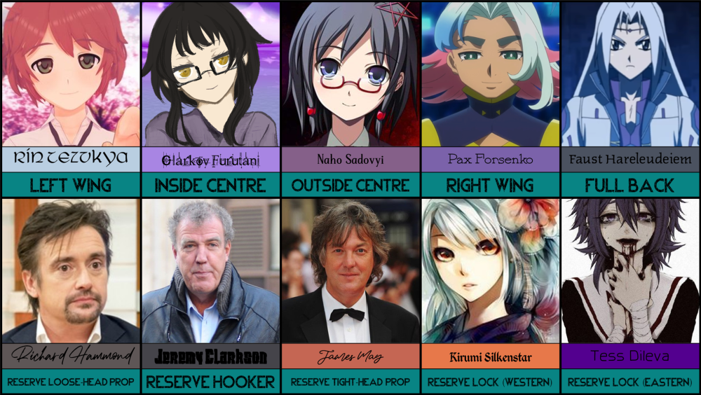 [Having gone through Aurum and recently entered Anders, the trio are in the middle of sending a support message to The Youkai and the fans.] Jeremy Clarkson: Hello, it's Jeremy. Here's Richard. Richard Hammond: Hello. Jeremy Clarkson: And here's James. James May: Hello there. Jeremy Clarkson: Now you might be wondering why we've suddenly put the camera on now. Richard Hammond: I don't think anyone's wondering that. Jeremy Clarkson: Oh. James May: Yeah, the Hertfordians. Richard Hammond: And the Jammbonians. Jeremy Clarkson: And Hertmerians. James May: Everyone who watches us sees what we do on these trips all the time. Like when Jeremy ran over Quiyakaso in that car. Jeremy Clarkson: That you and Richard sabotaged. Richard Hammond: It's strange though, it feels like we'd be using a script for all of these and yet we don't. Jeremy Clarkson: No, that is true. James May: It surprises me sometimes. Jeremy Clarkson: So anyway, shall we get back on topic? James May: Ooo yes. Jeremy Clarkson: Well then, to continue on what I asked before, we're showing this on camera now not only to you at home and whoever's watching us in this country, but also to the Hertfordshire-Jammbo rugby team. Richard Hammond: We thought it would be a good idea to send a video of support to The Youkai heading into the match with Varanius. Jeremy Clarkson: We also thought at the same time to ask all you fans at home and here in Overthinkers to offer your support too. We aren't heartless. James May: As you may know, the Hertfordshire-Jammbo rugby team is a slightly confusing and incomprehensible thing. Much like Hertfordshire-Jammbo itself and pretty much every national sporting team we have. Jeremy Clarkson: No, he's right. I mean there are both teenagers and middle-aged people in the team. Take myself for instance, I'm 54. James is 50 despite seeming 500 at times. Richard here is in his early 40s. James May: He'll probably remain 40 eternally. Richard Hammond: That doesn't sound too bad. Jeremy Clarkson: The point is, Star Breaker have a very large age range. It seems archaic, and it shouldn't by any logical measure be able to compete at the level it does. Yet somehow, a bleak yet at the same time scenic land of ice and dandelions with less than 4,000,000 people has not only cemented itself as one of Esferos' top sporting nations, but has also won multiple titles over the years. Richard Hammond: There was the T20 World Cup, and we can't forget the original Rugby World Cup. Jeremy Clarkson: Even in the Esferiad, Hertfordshire-Jammbo is consistently one of the best nations present. If there was ever a Winter Olympics, we'd probably be right at home. James May: Before recently when the Tsar and previous Prime Minister finally succeeded in putting through that law that prevented anyone too young from entering office, said previous Prime Minister - Furu, who was forced to sit in office from 10-14 years old due to political issues I won't cover here. Jeremy Clarkson: The candidate who won the election in 1419 was found guilty of a lot of corruption and as it turned out the deputy, Arthur Perebiynis, pretty much tried forcing Furu to break themselves in office and in their hobby as an artist so he could secretly rule. When Furu accepted themselves and left office when the absolute monarchy was formed, Arthur's plan failed and he tried to assassinate the Tsar directly. That failed and he's now on death row. Richard Hammond: Ouch! James May: ...Thank you Jeremy. Anyway, said previous Prime Minister somehow won gold and silver in Javelin. Richard Hammond: Makes you wonder how we can keep up with nigh-on everyone else really. Jeremy Clarkson: Let's be honest, growing up in Hertfordshire-Jammbo would make anyone at least a little resilient. War notwithstanding. James May: I knew you'd mention the war! Richard Hammond: That was terrible. We should know, we all lived through it. James May: For those from other nations who don't know, the Anglian War was a decade long civil war that started over a succession crisis, economic depression and ethnic conflict between the Hertfordians, Jammbonians and Hertmerians that sort of mirrored what happened when the Jammbonians first migrated to this area from northern Andolia in the 400s. Though that migration and conflict lasted over 100 years. Richard Hammond: Even though it pales in comparison to a century, a decade of war that destroyed the former continental powerhouse of Anglia-Jammbo originally known as Greater Anglia is still really tragic. Jeremy Clarkson: I know. The Hertmerians arguably had it worst. They were almost driven to extinction! Some say there were Hertmerians who fled for Hestmere here in Overthinkers. Some suggest Hestmere was founded by Hertmerians. Richard Hammond: To think that we're the last members of an extinct Hertmerian tribe that have been around where we live for over 2,600 years. James May: Well, technically the Merthyrni tribe still exists today if we're around. Richard Hammond: True, but you get my point. Jeremy Clarkson: We all went through that prolonged atrocity, and less than 20 years later had not only fully rebuilt an all but decimated country, but also exceeded every hope and expectation we had as a people. So if we can recover from something like that... James May: Then we can recover from something like this. This, of course, refers to the group stage. Richard Hammond: Our start to Rugby World Cup 5 was nothing short of terrible. We were smashed twice in a row by Larxia and Avadonialis. Two teams who we ought to be winning against. Admittedly, we were too busy racing to prove the usefulness of the Motorway of Death... and kind of dragged Galatea and Clarkov along for the ride. James May: Beyond that, though, I think The Youkai's turn-around has been one of the stories of the tournament. We went from being routed to beating the hosts against all odds, restricted Cambria to a 7-3 win which is really impressive if you look at their record, and swatted Riva