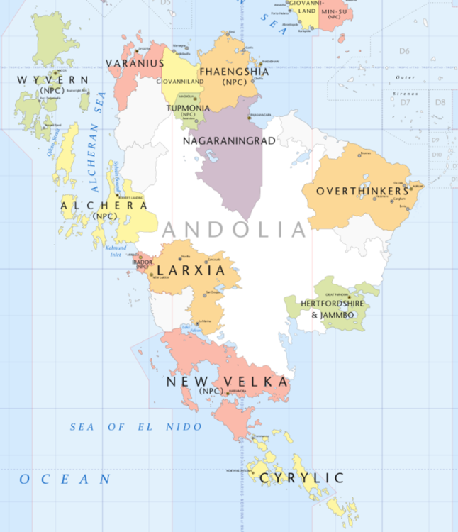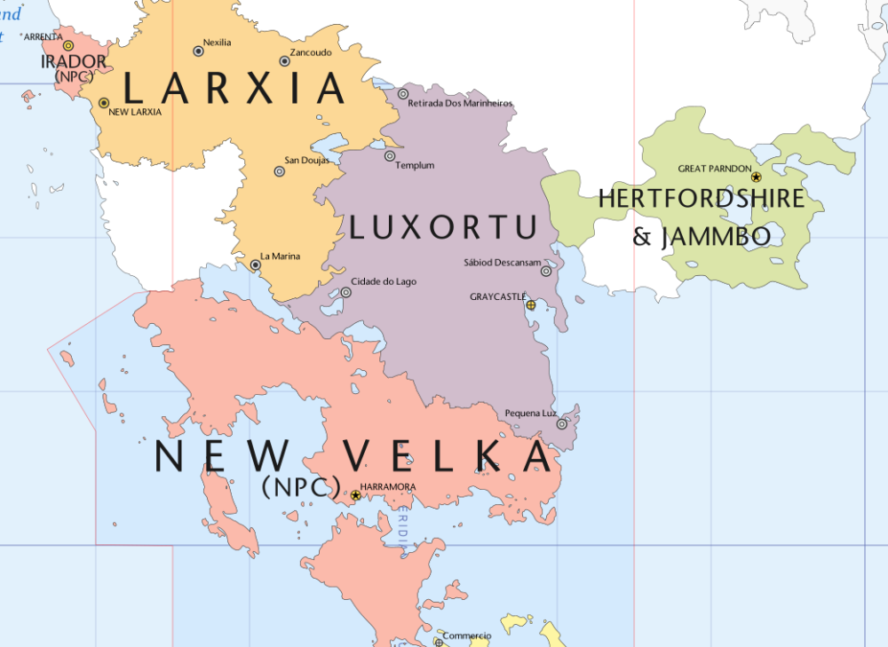 The Tsardom of Hertfordshire and Jammbo/Hertfordia - Herts101 Hertfordshire and Jammbo is a mid-sized nation in South-East Andolia. The Tsardom borders the Great Pacific Ocean to the south and east, has no borders to the north and west. Disregarding bordering nations, Hertfordshire and Jammbo is to the south of Overthinkers (OT), directly to the east of Larxia, south-east of Nagaraningrad and is north-east of New Velka. It holds one of Andolia's largest lake groups within its borders. ■■■■■■■■■■■■■■■■■ The Verkhovna Anglia was the Parliament of the nation. It usually held 700 seats, but could fluctuate between 698-702 depending on how the STV went in the elections, which occur every 4 years. Political parties are not a concept in Hertfordshire and Jammbo, and it was voted in 1422 for it to remain that way. In 1423, the nation became a Tsardom and the Verkhovna Anglia was abolished. The nation is currently an elective absolute monarchy. The Government (As of 1423): Tsar: Mecislavs Deben I ■ ■■■■■■■■■■■■■■■■ Anthem: ??? ■■■■■■■■■■■■■■■■■ Codes: HEJ, HF, .hj Calling Code: +3 80 Time Zone: IAT+0, IAT+1 ■■■■■■■■■■■■■■■■■ Capitals: Great Parndon, Hoddesdon, Maidenhall Denonym (Noun): Hertfordian Denonym (Adjective): Jammbonian Denonym (Plural): Hertfordians/Jammbonians Government: Confederal Elective Absolute Monarchy Monarch: Tsar Mečislavs I of House Deben ■■■■■■■■■■■■■■■■■ Continent: Andolia Area: 129,181mi^2 (334,577km^2) Population: 3,203,688 Density: 24.8 people/mi^2 (9.6 people/km^2) ■■■■■■■■■■■■■■■■■ GDP: Δ100,129,024,637 ($122,108,566,630) GDP/Capita: Δ31,254.30 ($38,115) Currency: Delta Pound (Δ/δ) Rate of Exchange: $1 = Δ0.82 ■■■■■■■■■■■■■■■■■ Real Life Cultural Inspirations: England (Essex, Hertfordshire, Suffolk), Ukraine, Latvia, Bulgaria Languages: Anglian, Jammbonian, Hertmerian, HJ Sign Language, Common Religions: 49% Church of the Countryside, 23% Eastern Orthodox Church of Jammbo, 8% Agnostic, 7% Gensokyan Shinto, 4% Atheist, 3.5% Other, 2% Hertmerian Paganism, 1% Pirate Church, 1% Temple of the Black Sun, 1% Hall of Dreams, 0.5% Cult of Nihilism ■■■■■■■■■■■■■■■■■ Military/1000 Capita: 51.5 Military (Total): 164,990 Conscription: Yes Spending (% of GDP): 2.9% Spending (Total): Δ2,903,741,714 ($3,541,148,432) ■■■■■■■■■■■■■■■■■ Flag: National (Lesser) Coat of Arms: National (Greater) Coat of Arms: Anglian Royal Army: Anglian Royal Air Force: Anglian Royal Navy: Pirate Fleet of Hertfordshire and Jammbo: Royal Privateer Fleet of Hertfordshire and Jammbo: