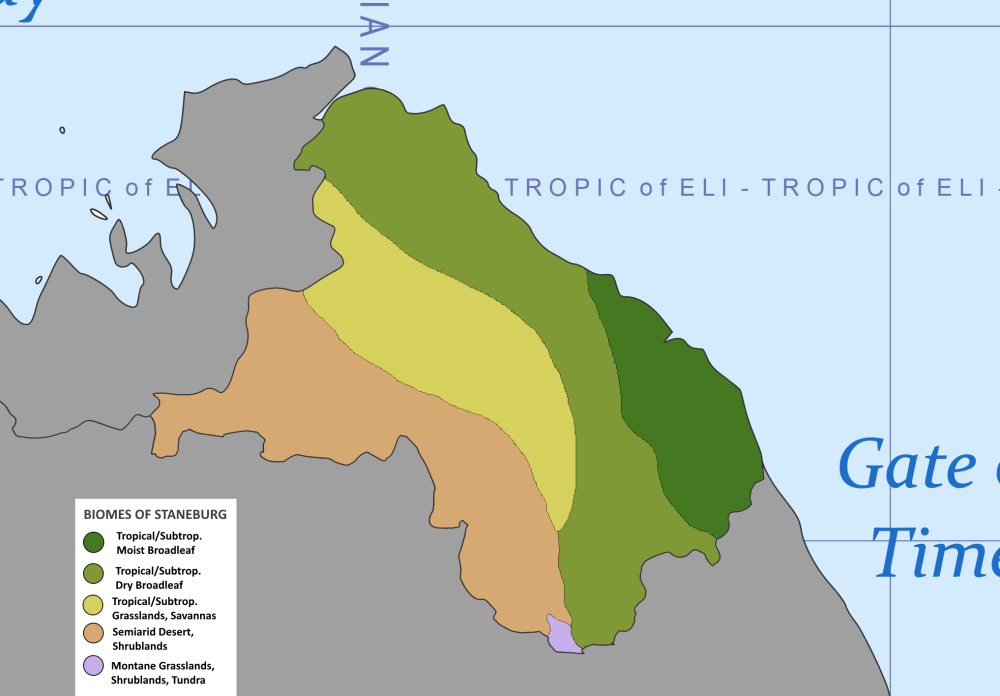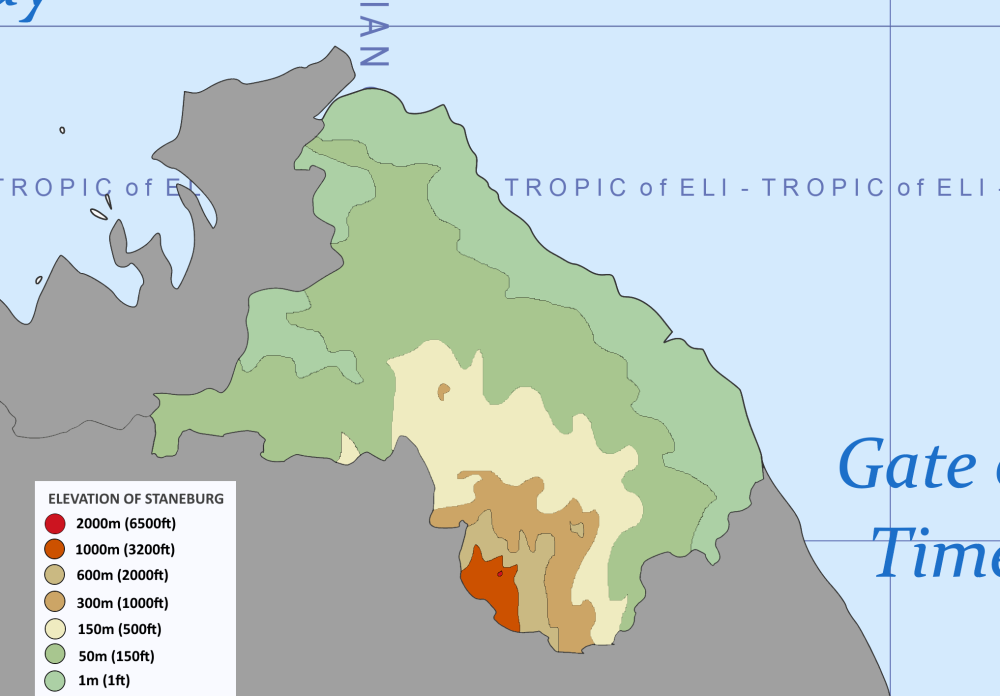 THE FEDERAL REPUBLIC OF STANEBURG Flag Seal Motto: Unity in Diversity Location of Staneburg in Aura Capital City Cauloria (Largest city) Demonym(s) Staneburgian(s) Government Federal Presidential Republic President James Wilton Vice President Karl Anderson Speaker of the House Jenny Hoffsburg Legislature Congress of the State Upper House The Senate Lower House The House of Representatives Judiciary The Supreme Court Chief Justice Alexander Corayson Land Area 187,139 km2(72,255 sq mi) Population 12,651,808 Density 67.6 km2 (175.1 sq mi) GDP (PPP) 470 Billion IMU Per Capita 37, 189 IMU Currency Stence Time Zone IAT+0 Calling Code +2 40 Country code SBG, SB Internet TLD .sbg General Overview Staneburg, officially known as The Federal Republic of Staneburg, is a country located in the northeastern coast of the continent of Aura in Esferos. The country is bordered by Greiya at its Northwestern border, Quistya at its southern border and the sea at its Eastern border. The country has a land area of 187,139 km2(72,255 sq mi). The administrative capital is the Federal City of Cauloria, which is currently the largest city in the country. Other notable cities include Vaulernia, which mostly acts as the entertainment hub of the country as well as being the second largest city in the country; Dariance, Eiravon and Willowdale. The population of the country is currently estimated at 12 million Staneburgians and a population density of 67.6 km2 (175.1 sq mi). The country is governed as a federal republic, which gives a certain level of power to the administrative divisions of the country. Geography Staneburg located at the northeastern coast of Aura has different climates and elevations across its borders. The country has its costal borders to be flat as compared to the inner borders. The northeastern part of the country as well as the coastal borders is characterized with an elevation of 1 metre (1 feet). The central part of the country is known to be quite hilly with an elevation of about 50 metres (150 feet). The highest point of the country is the Mount Alexis which has an elevation of 2000 metres (6500 feet). There are some inner parts of the country with a relatively flat land with the same elevation as the coastal parts of the country. The country has different climate conditions across its borders. There are about four main climate conditions which are experienced by the inhabitants of the country. The coastal parts as well as the central parts of the country are dominated by the tropical and subtropical conditions which causes the inhabitants in these areas to experience a high amount of rainfall annually. These areas are also characterized by their cold environment due to these conditions. The country also had a semiarid desert which passes through it at its southwestern borders. The average temperature of these areas during the summer period is estimated to be at 23° C. There are also savannas and grasslands located close to these areas. These areas are characterized by the presence of several grasses which spreads across the lands. Elevation of Staneburg Climate conditions of Staneburg Government Staneburg is a Federal Presidential Republic which is made up of three arms of government; these are the Executive branch which is headed by the President currently His Excellency James Wilton, who appoints a group of cabinet ministers approved by a majority vote in the Congress of the State. The President is assisted by the Vice President, currently His Excellency Karl Anderson who together with the President are elected on an election ticket by a majority vote by the qualified citizens of Staneburg. The Legislative branch is the Congress of State which is made up of two houses the upper house, The Senate made up of 20 senators and the lower house, The House of Representatives made up of 380 representatives. The House of Representatives is headed by the Speaker of the House currently Hon. Jenny Hoffsburg, elected by a majority vote of the members of Congress before the opening of a new congress. The Judicial branch has 10 justices headed by the Chief Justice, currently His Lord Alexander Corayson, who are appointed by the President with the approval of the Judicial committee of the Congress of State. The nation is governed at the local levels through a state government at the regional level and a municipal government at the city level. Economy The country of Staneburg has a growing economy that sustains the lives of inhabitants within its borders. The currency used by the nation is the Staneburgian Stence. The country's GDP (PPP) is currently estimated at 470 billion IMU. Its GDP per capita is 37,189 IMU. Staneburg's economy is currently sustained by its tourism sectors, which consist of tourist sites within the country as well as museums, which have some forms of art depicting the history of the country. The economy is also driven by its fishing sectors, which utilize the coastal borders of the country.